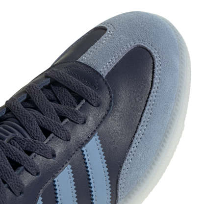 Lace up the Samba OG and kick it old-school. A perennial favorite in the Adithtdas Originals stable of iconic shoes, this standout version uses a mix of smooth leathers accented with bold stitch detail and the always-fresh serrated 3-Stripes. The low-profile rubber cupsole gives you traction originally designed for indoor sports but now makes its plays on the street. Contrast lace overlays, tongue, and collar lining give this version of the legend its distinction.