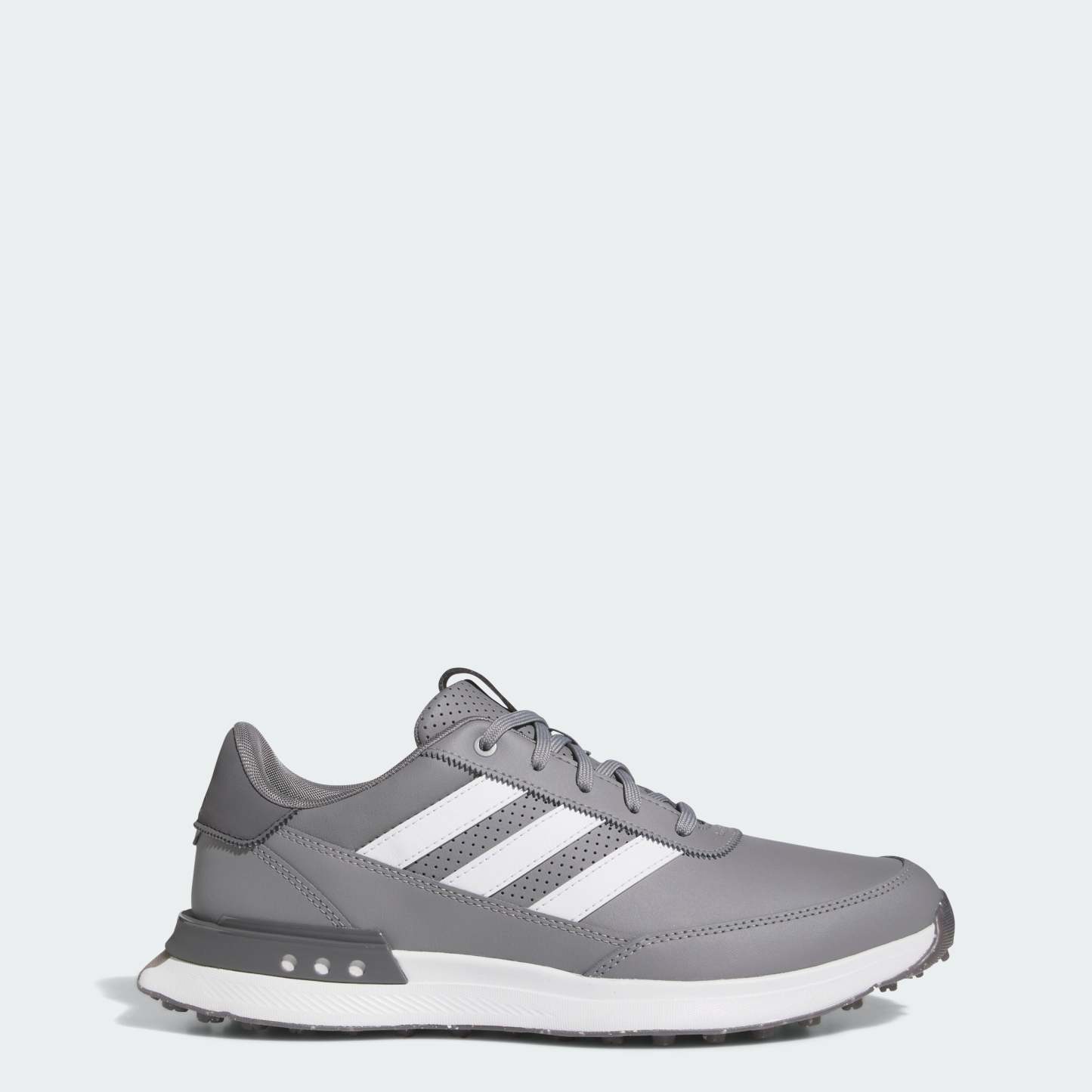 Lace up all-day comfort for social rounds and beyond. Inspired by the lightweight, responsive feel of a running shoe, these spikeless golf shoes offer a solid stance and all-day, anywhere style. The waterproof leather upper and protective toe cap keep feet dry through damp greens, and the spikeless Adiwear outsole and supportive heel provide the stability and traction for a strong stance while making for easy transitions off the course.